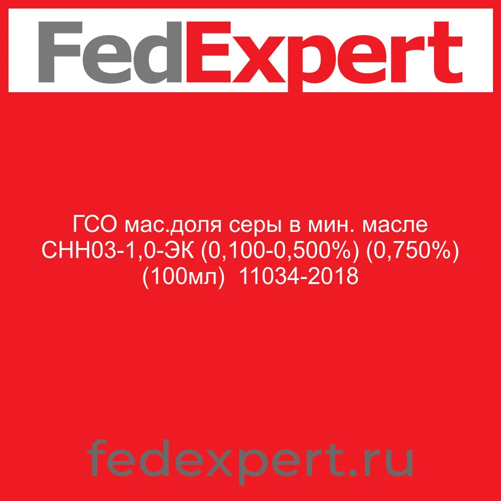 ГСО мас.доля серы в мин. масле СНН03-1,0-ЭК (0,100-0,500%) (0,750%) (100мл) 11034-2018