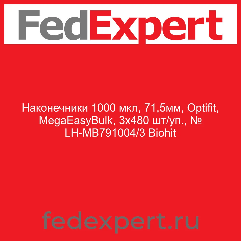 Наконечники 1000 мкл, 71,5мм, Optifit, MegaEasyBulk, 3х480 шт/уп., № LH-МВ791004/3 Biohit
