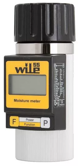 Влагомер зерна Wile 55 (Вайл-55) самый распространенный влагомер на территории России.Влагомер зерна имеет погрешность 0,5%. Технические характеристики WILE-55:? диапазон измерения содержания влаги, % — 8-35для масличных культур — 6-25?точность рабочего диапазона (при индивидуальной градуировке), % +/- 1,0 (+/- 0,5)? количество калибровок, шт. — 16? вычисление среднего показания влажности, кол-во результатов измерений, шт. — 99? питание, батарейка — 9В (типа «Крона»)? масса, кг не более — 0,7? температура эксплуатации, 0 С — +5…+35.