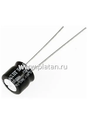 ECAP (К50-35 мини), 1 мкФ, 50 В, 105C, 4X5мм, Конденсатор электролитический алюминиевый миниатюрный