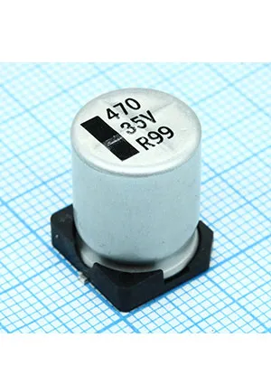 Ультракомпактный SMD электролитический конденсатор 470uF, 35V, размером 12.5×16мм, рассчитанный на работу до 105°C. Купить от FedExpert