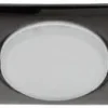 Корпус литой, плоский, круглый, тонкий, диаметром 100 мм, из стали, цвета ‘металлик’, с матовым белым плафоном.