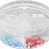In a TANOS MINI-systainer® (solid plastic box). T-Loc fastener for one-handed operation: open or close the systainer® with one turn and connect to a second systainer®. Opening when connected: fast and simple access to content without disconnecting. Two stackable plastic inserts with 6 trays each for connectors. With an assortment of standard cable connectors. With crimping pliers 97 32 240.